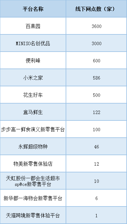 传统电商从诞生之日起就存在着难以补平的明显短板,线上购物的体验始终不及线下购物。相对于线下实体店给顾客提供商品或服务时所具备的可视性、可听性、可触性、可感性、可用性等直观属性,线上电商始终没有找到能够提供真实场景和良好购物体验的现实路径。因此,在用户的消费过程体验方面要远逊于实体店面。从表2,可以看出新零售平台线下实体店网点数量中,线下网点数量为40家以上的有百果园、名创优品、便利峰、小米之家、花生好车、盒马鲜生、步步高—鲜食演义新零售平台和永辉超级物种等新零售平台。