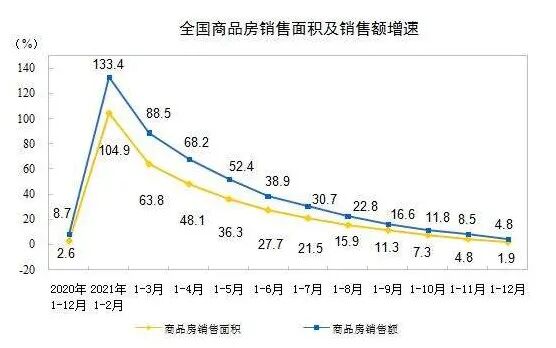 1月17日,国家统计局公布的2021年全国房地产开发投资和销售情况显示,2021年商品房销售额为18.2万亿元,同比增长4.8%,销售面积为17.9亿平方米,同比增长1.9%,均为历史最高水平。