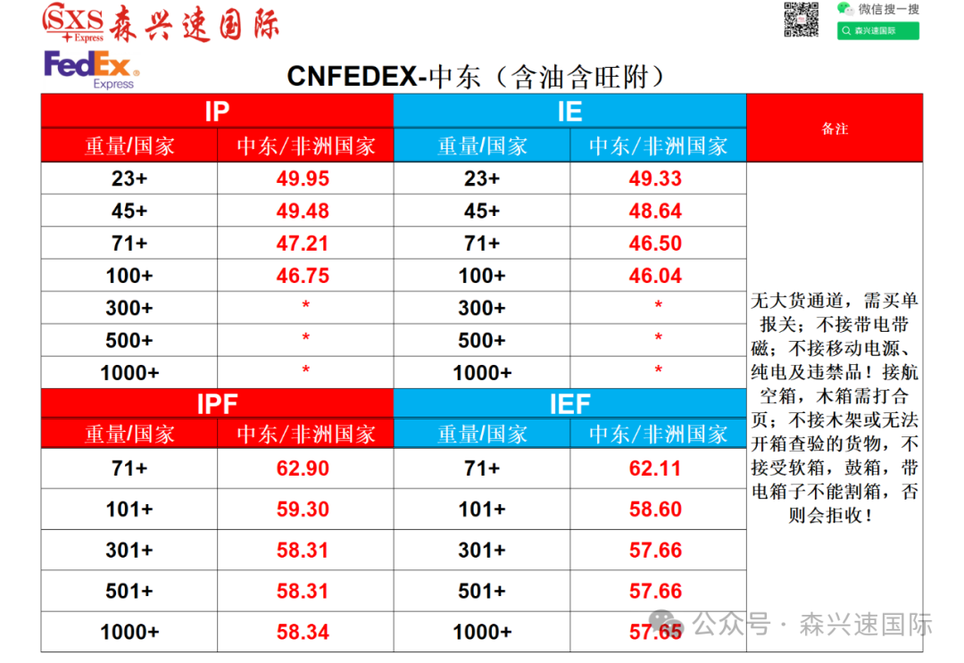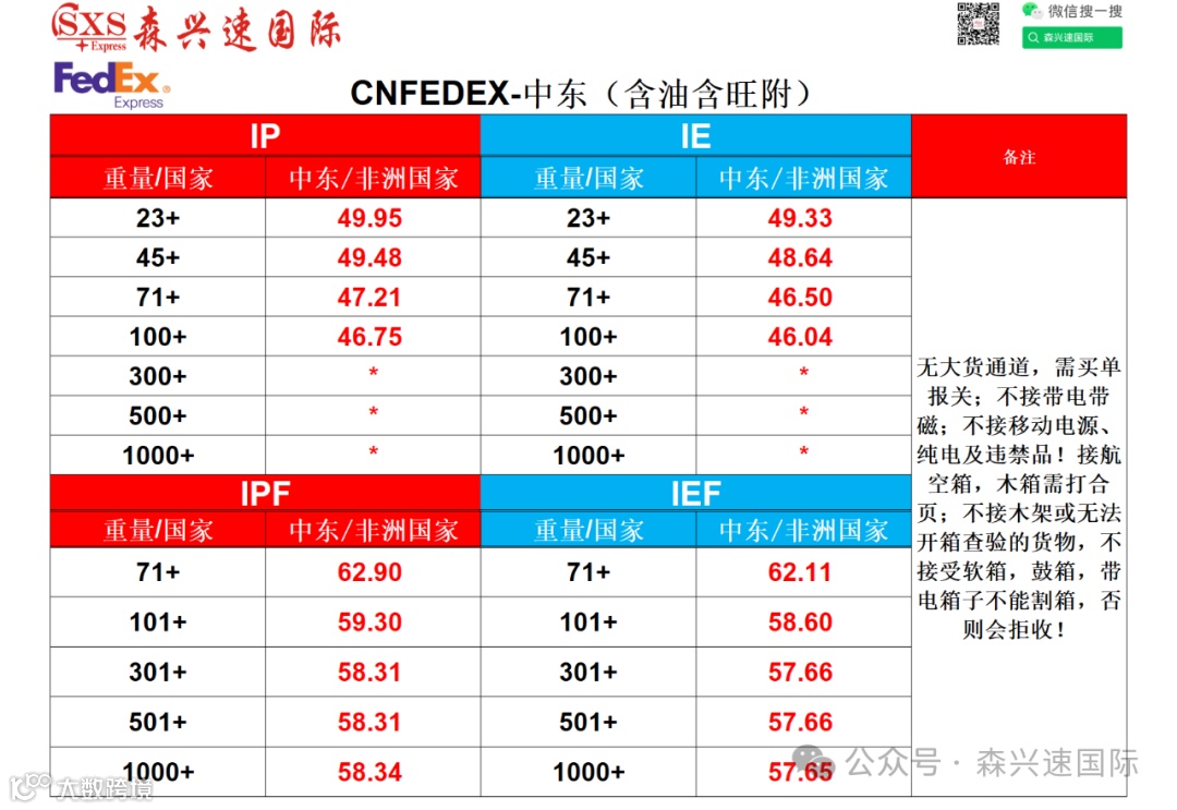 CNFEDEX-中东非洲,IE=46.04/KG,IP=46.75/KG
