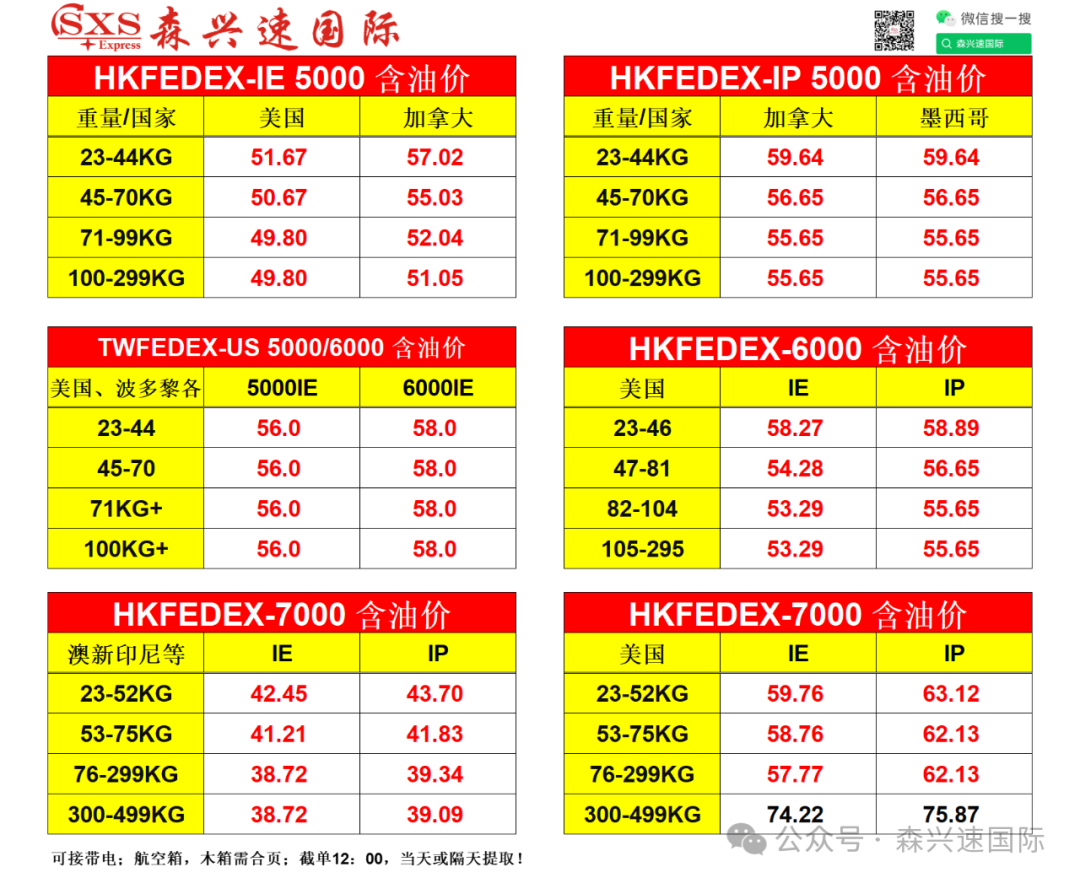 HKFEDEX-5000,IE美国=49.8/KG,加拿大=51.05/KG