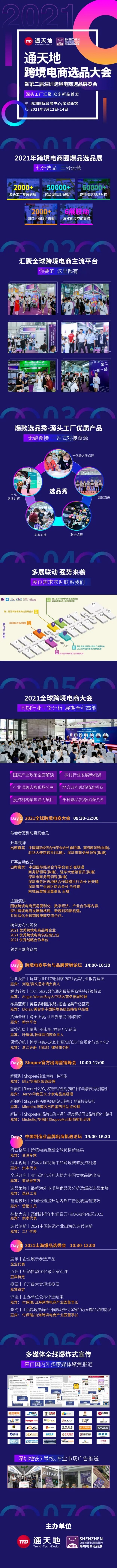 深圳跨境电商选品展览会(简称:2021 SEE深跨展)是由深圳市产业园区商会、优检亿达展览(深圳)有限公司、深圳优选展览有限公司共同主办,百晓网、深圳市亿达科技信息服务有限公司联合主办,亚马逊全球开店作为支持单位,TTD电商孵化、U选U品、鼎点传媒、大麦知识产权、优检检测、尚伽知识产权作为战略合作单位举办的一场针对跨境电商全产业链、上下游的B2B贸易型博览会。