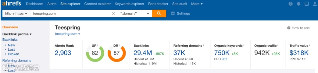 功能强大,集站内诊断、关键字研究、热门内容研究、外链分析、关键词排名追踪、是SEO的必要工具。产品搜索量相关的衍生词都可以用Ahrefs找出来,根据他们搜索量和点击量来判断这个产品和行业适不适合我们。