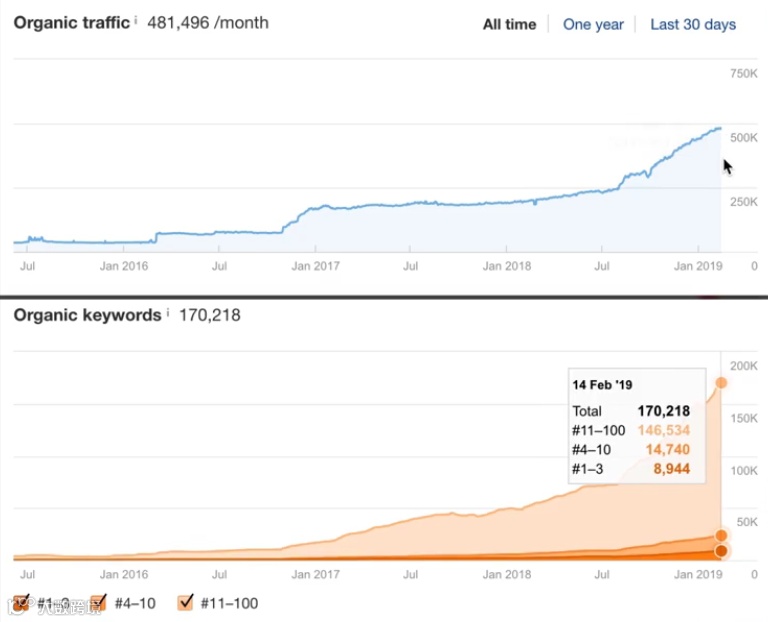 我们通过Ahrefs看产品在谷歌趋势上面的搜索量趋势,可以大概了解这个产品的过去和未来发展趋势,同时获取必要的外部行业信息。