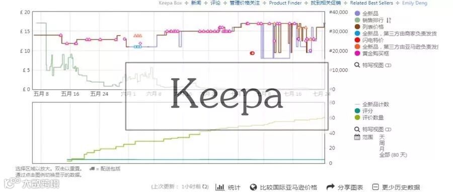 通过keepa可以简单推理和判断竞争对手产品推广起来的原因;查询竞争对手有没有做秒杀,秒杀的数据等等;实时追踪竞争对手的价格,可以对自己的产品进行优化,提高自己的竞争度。
