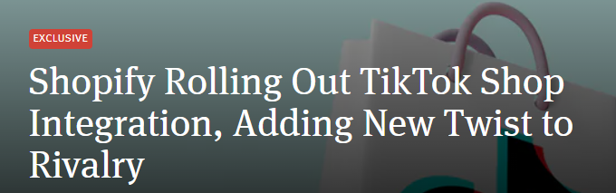 Shopify推出一款TikTokShop集成插件,简化商家通过TikTokShop销售的流程,此举是对TikTokShop即将关闭半闭环模式的回应。据报道,该插件能够帮助商家更轻松地同步产品目录,并将为卖家提供一个Shopify面板,以便他们可以访问在TikTokShop的销售数据。此前在半闭环模式下,Shopify商家也必须使用第三方软件将信息传输到Shopify。