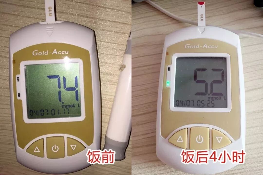 第2天,把主食换成燕麦胚芽米。饭后4小时,血糖值下降2.2。