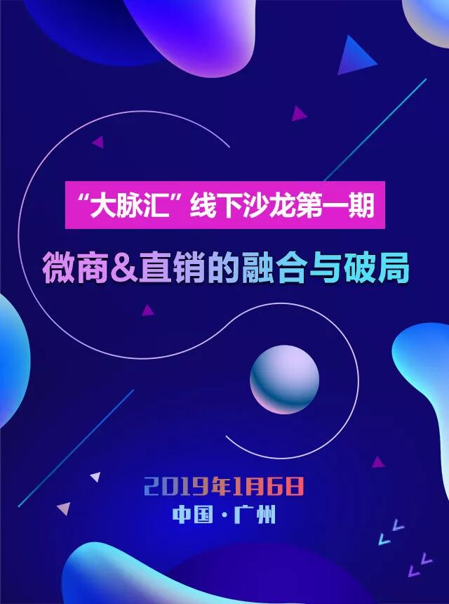 在2019年来临之际,第一期“大脉汇”线下沙龙,我们将与您碰撞微商&直销如何寻求融合与破局。