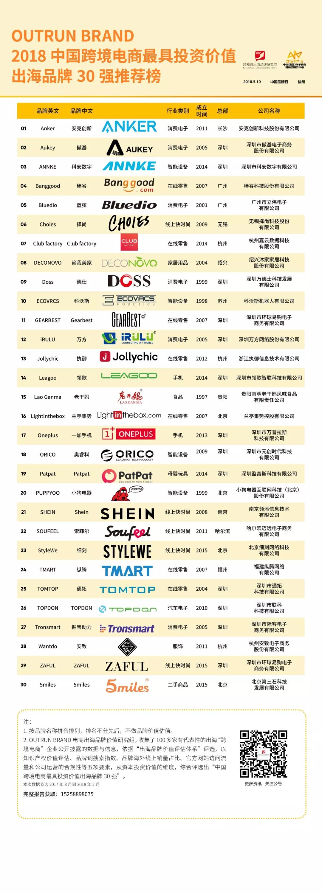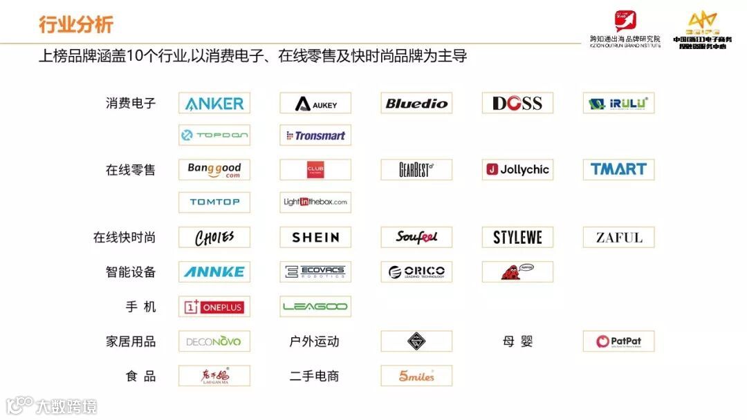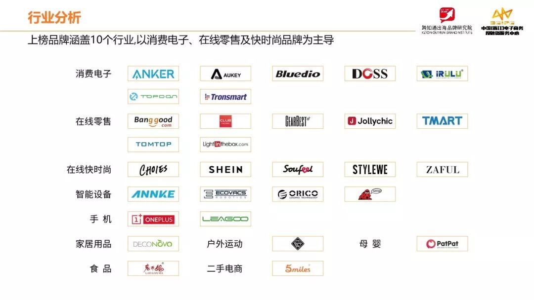对,这可以说是中国出口跨境电商品牌第一次完整的大合影,在跨境电商领域,过去没有一家机构这么做过,跨知通开了先河。这30家企业不能代表中国跨境电商的全部,坦率地说,也不一定是最具有价值,因为很多浮在水下的跨境电商品牌我们不一定能看到,我们拿到的数据也一定不完整,但是我可以说他们是最优秀的代表,也是我们现阶段出口跨境电商品牌的一个缩影,我们就把他当做一次案例来分析。