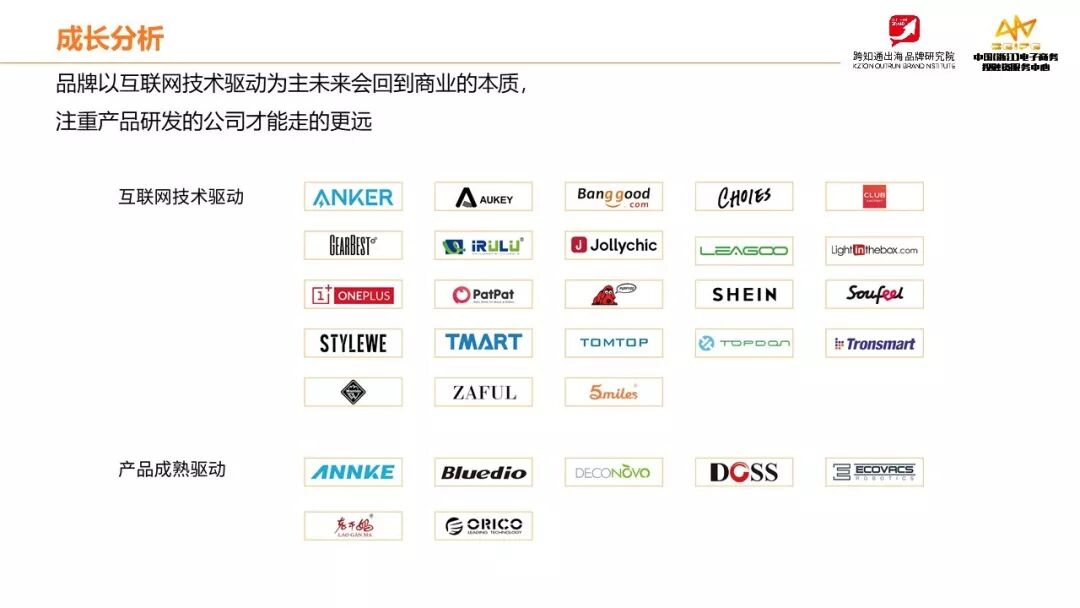 这一轮的创业,从国内的BAT,到国外的google, Amazon, 还是苹果等的,还有各种独角兽公司,你会发现,最大的变革来自互联网,技术的升级,换来产业的提升,从而发现新的机会,跨境电商行业也一样,这30个品牌中,大概只要7个来自传统的制造行业,也可以基本上说是从事传统外贸代加工出生,我刚才说了,中国品牌出海的真正机会在产品,所以未来产品驱动的品牌会越来越多。你回过头去看,10前的淘宝,现在留下的淘品牌还有多少?所以我认为这是传统外贸工厂的机会,但是我也的提醒各位传统制造企业的老板,品牌的打造一定有稳定的团队,不用迷恋第三方的代运营,你有见过一个团队打造出10个成功品牌的故事吗?最好的模式是绑定一个懂互联网销售的团队,公共打造一个属于大家的品牌。