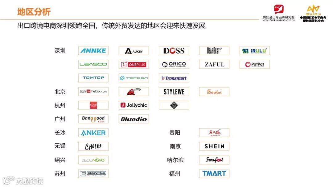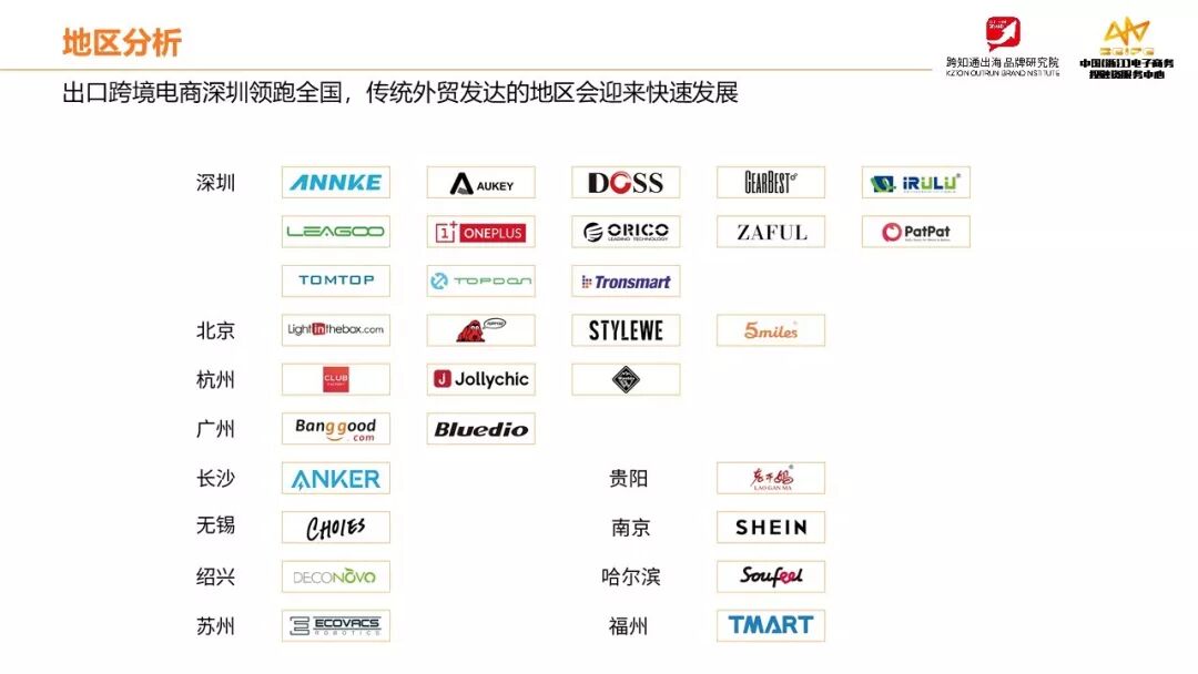 我们从地区分布的角度来分析,中国的跨境电商品牌在哪里?