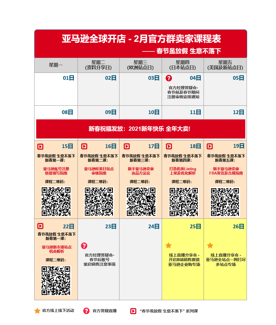 请查阅2月课程表,欢迎卖家根据课程表进行学习,2021开年大卖!