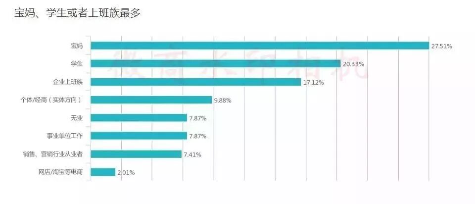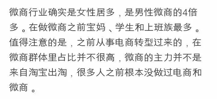 微商群体大部分学历在高中以下,这也说明做微商的门槛很低,与学历无关。