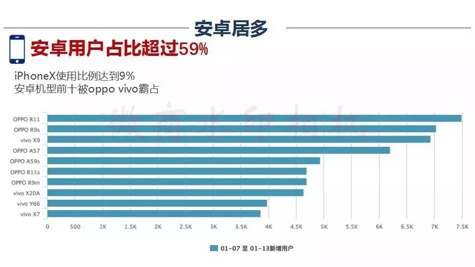 微商的安卓用户占比59% ,前十机型被oppo和vivo霸占,iPhone用户中,iPhoneX用户超过9%!手机是微商的武器,微商的机型配置还是比较不错的!