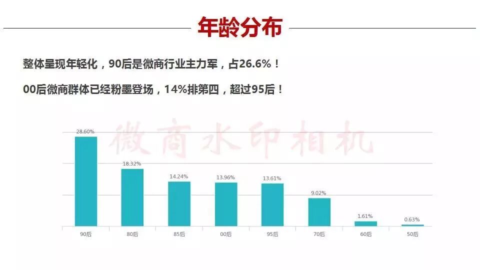 微商的主力年龄是80后和90后,值得注意的是00后已经占比14% 粉墨登场!