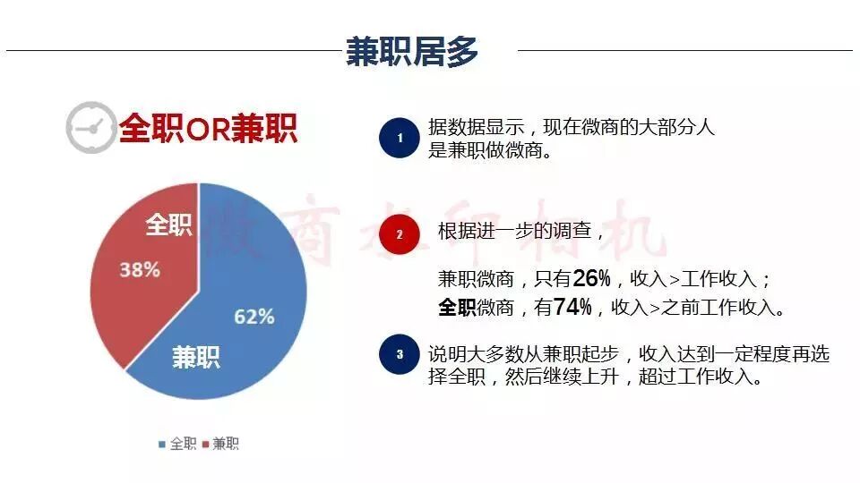 微商的起步往往是兼职开始,兼职的收入一旦能养活自己,就开始向全职转化。