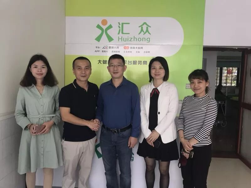 3月26日,广州乐居日化用品有限公司总经理李坤、总监杨彬一行莅临汇众产业集团总部考察交流,在汇众大脉科技有限公司董事长梁学伟的陪同下对汇众公司进行全面的了解,并就渠道合作、产业链条资源整合、营销模式探讨等进行深入的交流。