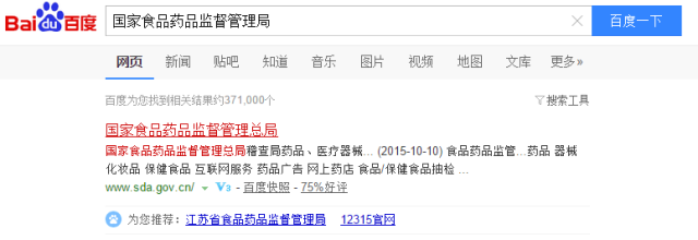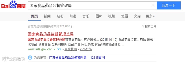 第一步:百度搜索“国家食品药品监督管理总局”或输入网址http://www.sda.gov.cn/WS01/CL0001