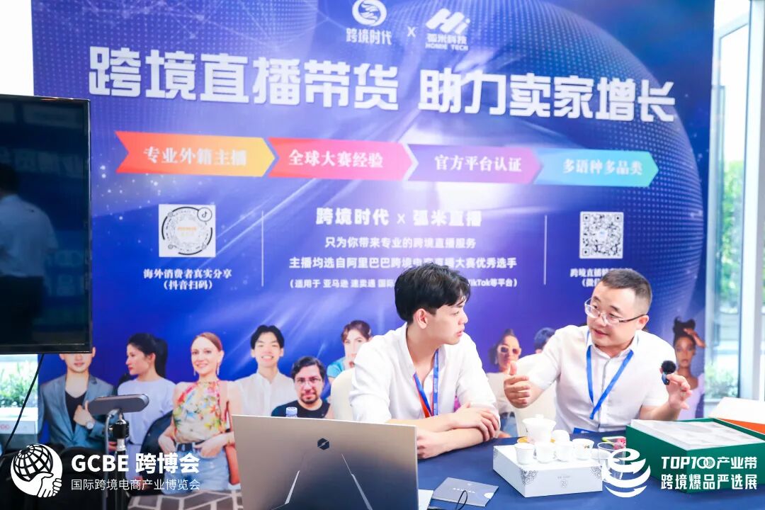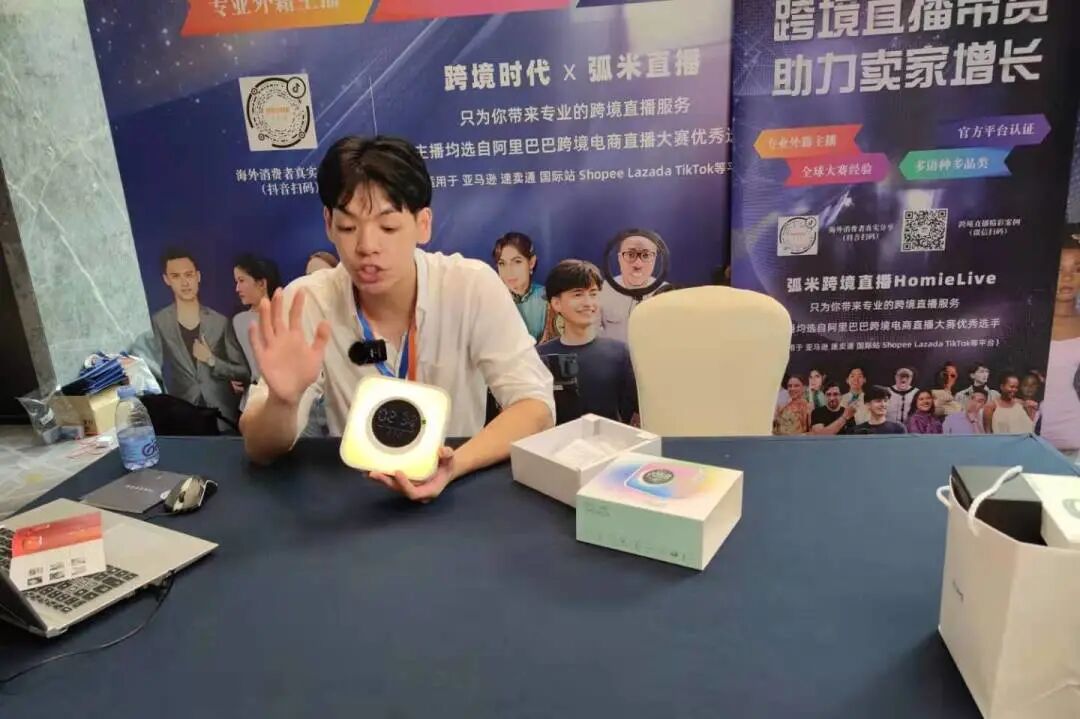 直播区多名外籍主播,施展百般才艺,给到场的展商免费进行直播带货,在跨境时代视频号进行直播,获赞上千。工厂老板都纷纷拿出自家的招牌产品送去直播区,带货期间,大量卖家驻足观看。