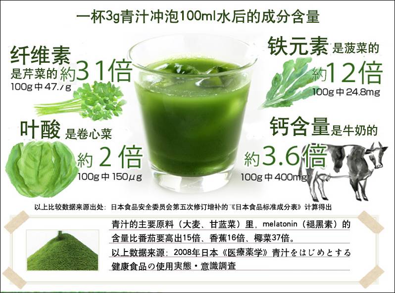 日本现今最流行的饮料,由各种蔬果以及豆制品加工出来的“酵素青汁”,有利于预防肠胃道疾病,肌肤美容,控制体重以及调节女性生理。