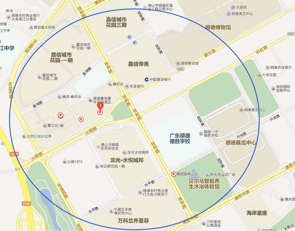 将在顺德区大良嘉信商业圈附近片区进行选址。该地区属于二级商业圈,周边有嘉信城市花园、嘉信嘉兆台、嘉信帝苑、龙光水悦城邦等住宅区,顺德大良人民医院、嘉信西山小学、广东顺德德胜学校等公共服务机构。
