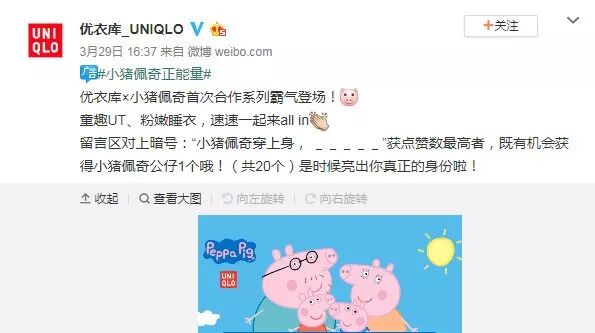 目前,小猪佩奇在中国市场的业务已经扩展至玩具、服装、快速消费品、家居/家具和出版。服装品牌优衣库日前也推出了与小猪佩奇合作的童装,并也在推广时借助了社交网络上的流行语。