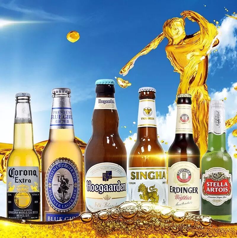 科罗娜啤酒、艾丁格系列、柏龙瓶装系列、时代、福佳白、胜狮、蓝妹啤酒系列