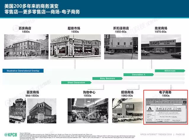 200多年过去,美国的商务演变从最初的零售店到商城,一路在90年代演变出了电子商务。