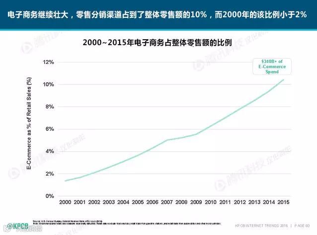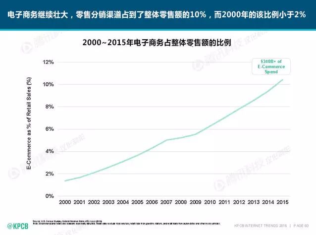 在“互联网女皇”玛丽·米克尔最新发布的2016年互联网趋势报告中,DT君发现电子商务虽不是第一次被提及,但所占板块比例较往年有明显的增加。