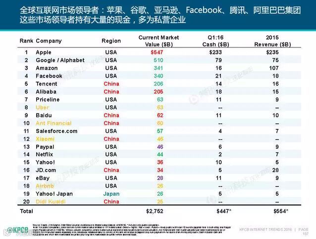 在全球20家互联网市场领导者名单中,中国公司占据了7个席位,席位数目仅次于美国。