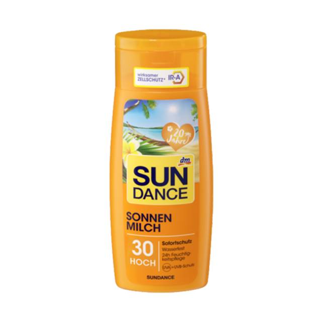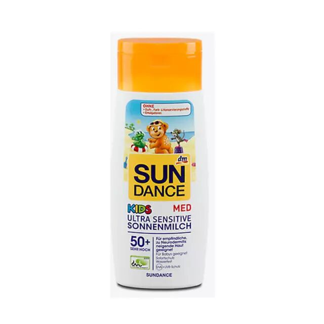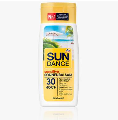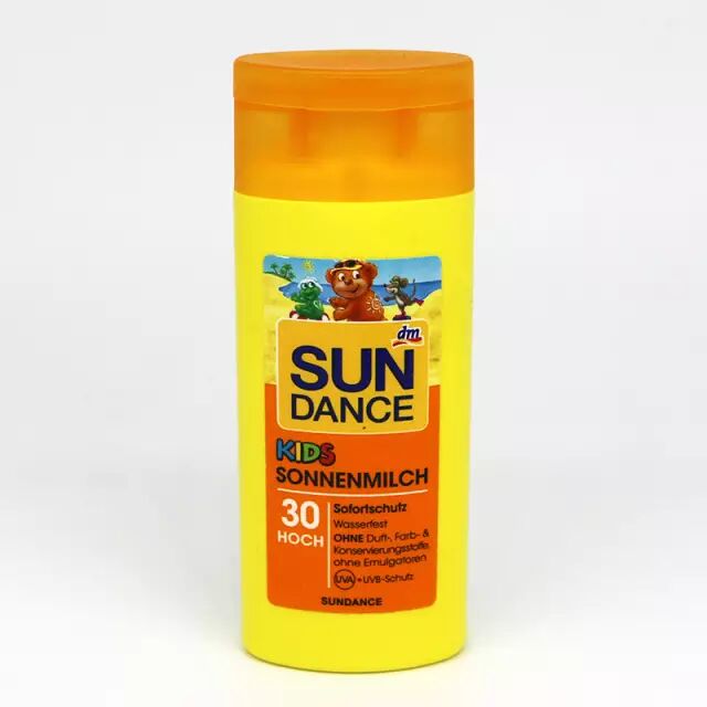 SUNDANCE儿童防晒霜能安全有效预防紫外线和UVA/UVB射线对宝宝柔嫩皮肤的伤害;不含化学UVA/UVB太阳 过滤成分,尤其适合宝宝稚嫩皮肤,避免出现晒伤、晒斑。含有矿物质物理反射功能,防护宝宝长时间在太阳下紫外线受到的侵害。本产品经德国皮肤科专家测试验证,安全可靠,不含色素、香精、防腐剂、矿物油及有害的化学成分。