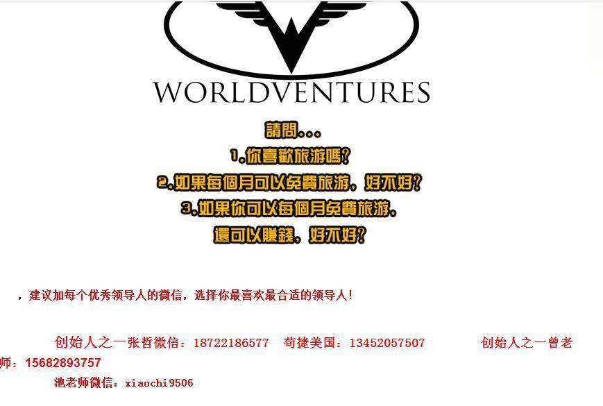 据了解WV在美国确实属于旅游直销公司,是合法的,但是在美国申请一家直销公司并没有诸多的法律限制。身份合法了,那么再来看看他的简介,worldventures(世界环旅集团)2005年创立于美国得克萨斯州,拥有10万平方米的办公楼,是一家大型电子商务旅游直销公司,也是美国5000家超速成长企业的领导者,世界100强直销公司排名第65位(2015年排名47位)。