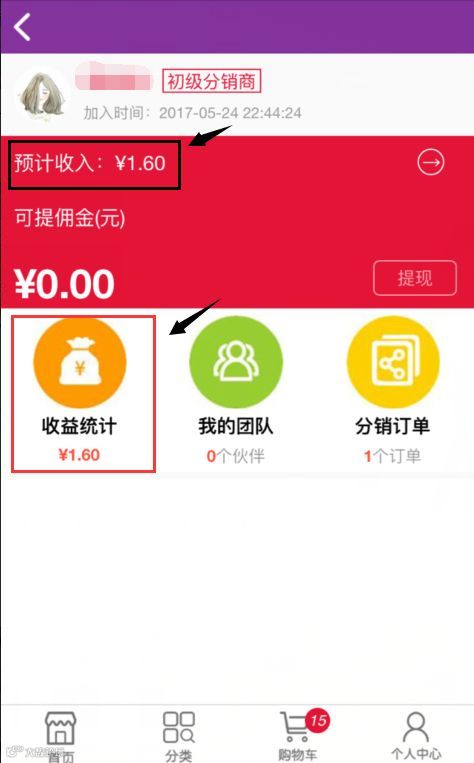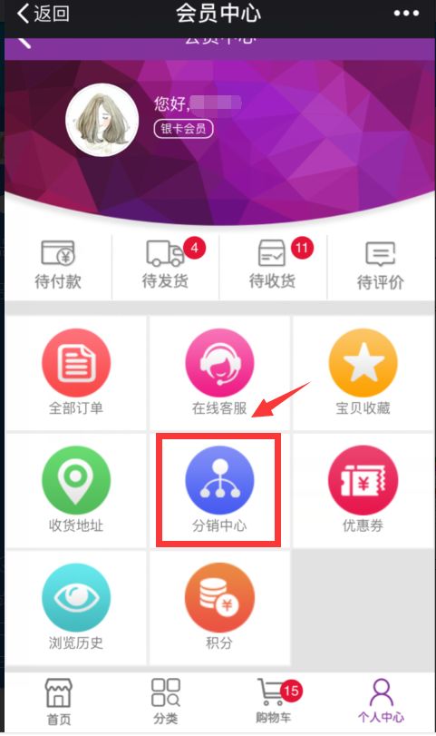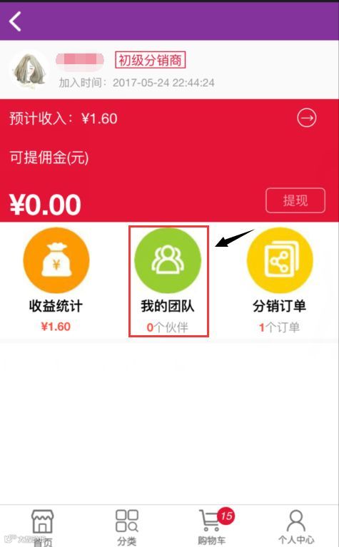 进入个人中心查看分销中心