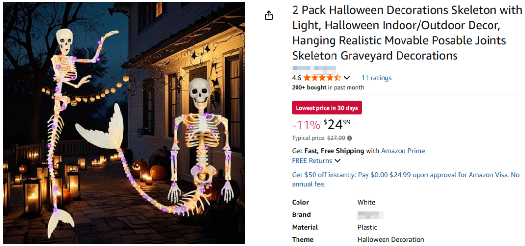 4.文案避险:Listing 标题、描述和后台关键词避免出现专利产品名称或明显指代性的描述(如直接写“发光骷髅套装官方款”等)。