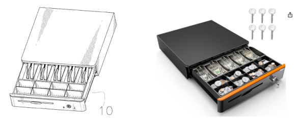 风险提醒:POS收银配件类产品近年来因“安装结构+抽屉面板”易重合而频被诉,尤其是在沃尔玛、亚马逊、eBay等平台有售的中小卖家务必注意!