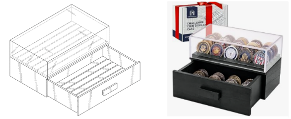风险提醒:汽车零钱收纳盒、办公桌面分类盒等产品若在格口排布+盖体外观与专利图样高度相似,可能被认定构成外观侵权。