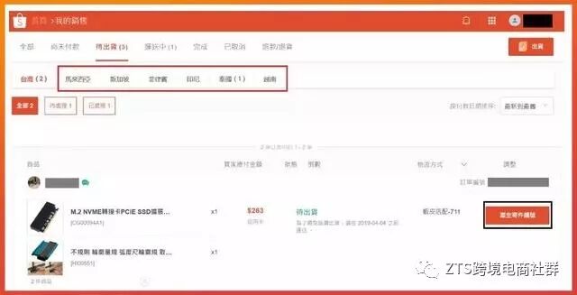 在后台点开“我的銷售”,选择对应站点,按照中国台湾站相同的操作,点击“產生寄件編號”,打印面单,并贴到发往Shopee仓库的包裹上,即可轻松出货。