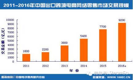 据中国电子商务研究中心(100EC.CN)监测数据显示,2015年,中国出口跨境电商网络零售市场交易规模为7200亿元,同比增长33.3%。