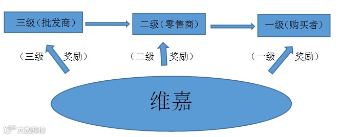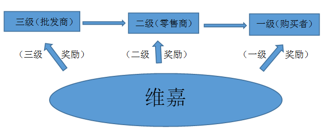 三级模式独特,购买者既是消费者,又是一级,在购买的同时,自己也会得到佣金。