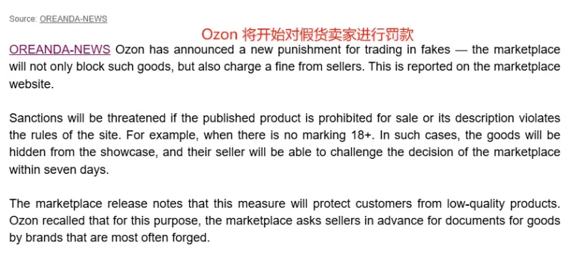 对销售违禁商品的卖家处以高额罚款,每件商品罚款可达1万卢布。