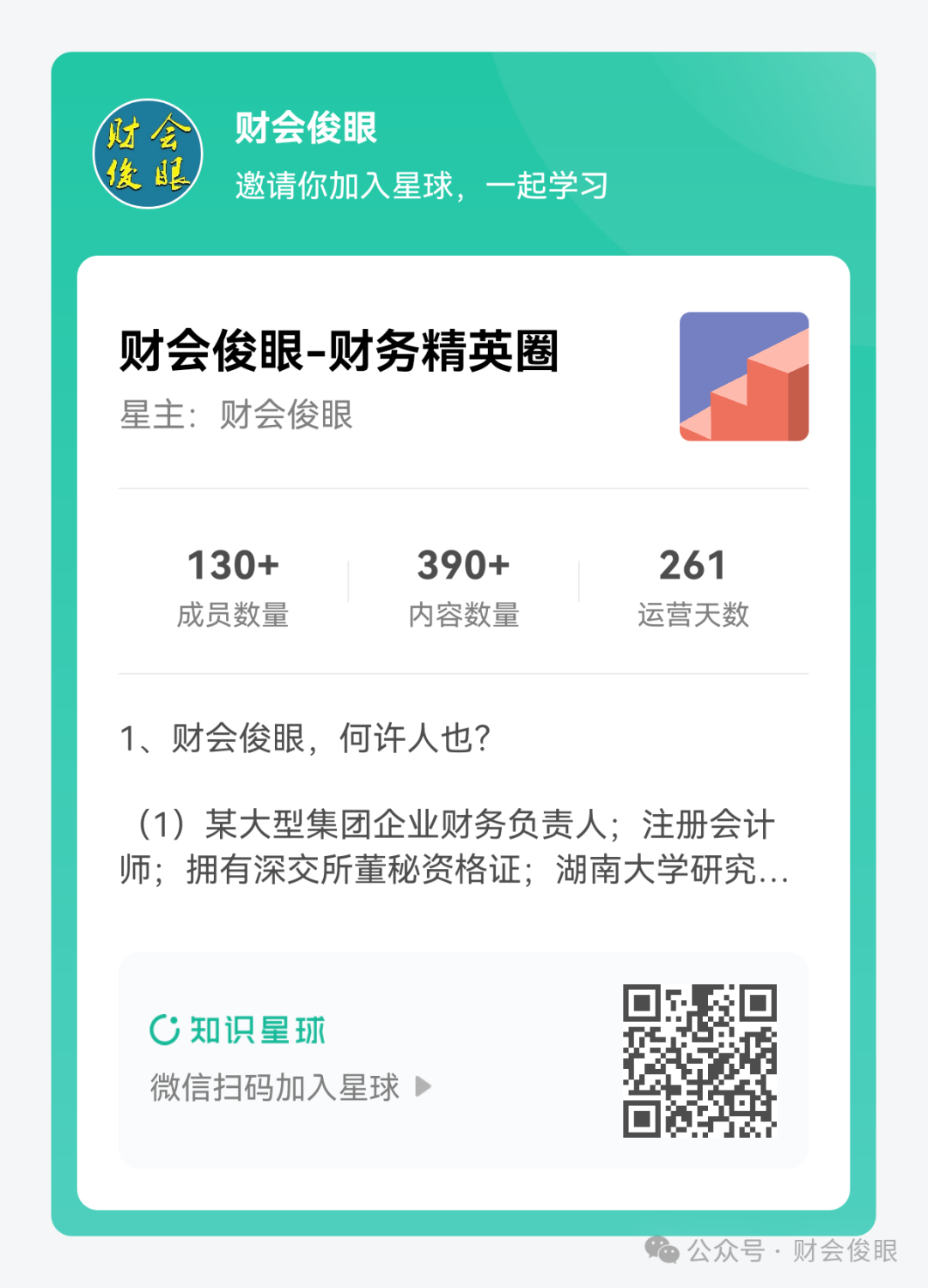 欢迎扫描如下二维码,与财务精英共同进化成长。这里有系统的财务资料、CFO视角的所思所得、答疑解惑等等。