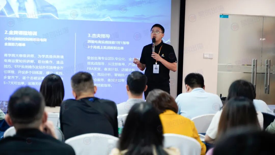 接着,由荣创出海葛院长详细介绍我司跨境电商培训团队及实力,助力小白及新手卖家轻松入局跨境电商,提供跨境电商运营知识讲解、账号注册、产品调研、站外引流、后台操作、造品技巧、店铺安全等全方位课程。过程中,详细分享了C端卖家学员案例的故事,该案例中,通过研发团队对产品进行改款,可以避免侵权问题的发生,长期稳定出单,而不用担心被封账号。葛院长表示,学习掌握亚马逊的市场和规则,对每一位卖家来说都非常重要。