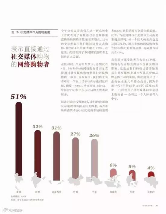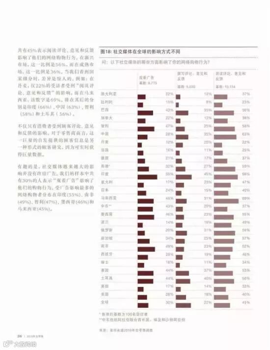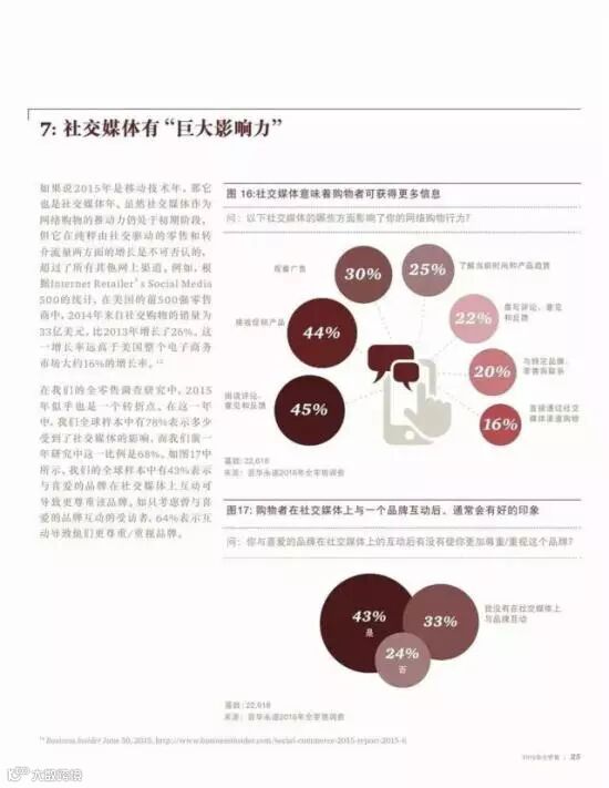社交媒体有“巨大影响力” - 虽然社交媒体作为网络购物的推动力仍处于初期阶段,但它在纯粹的社交驱动的零售和 转介流量两方面的增长是不可否认的,超过了所有其他网上渠道。在我们的全零售调查研究中,2015年似乎也是一个转折点。在这一年中,我们全球样本中有78%表示多少受到了社交媒体的影响,而我们前一年研究中这一比例是68%。