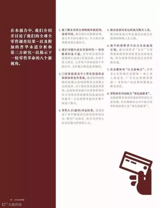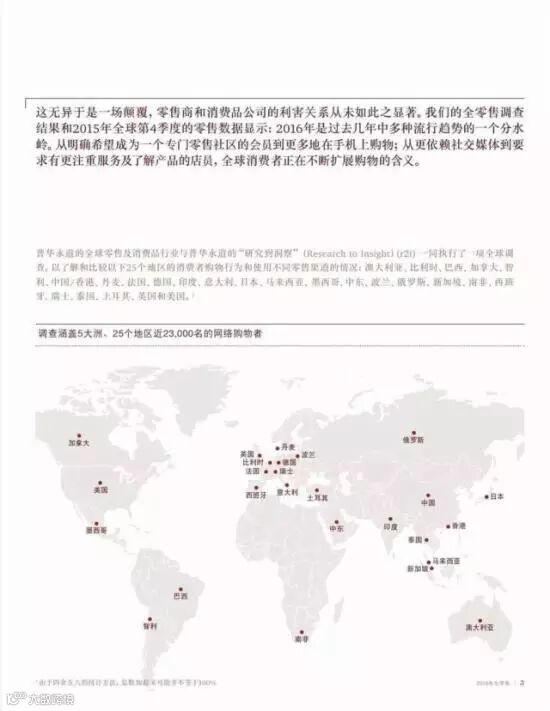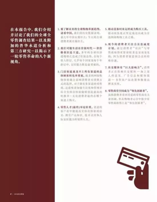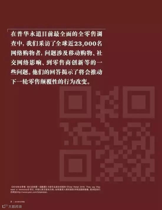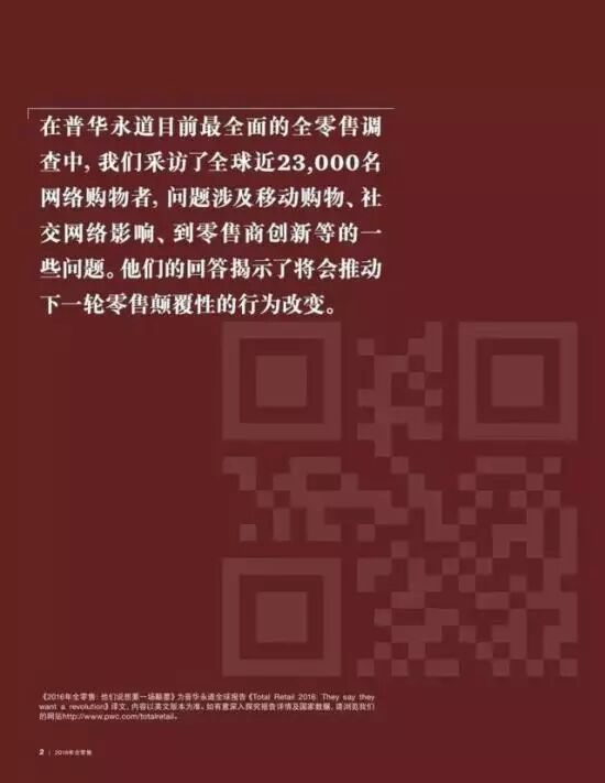 今年有来自25个不同地区超过23,000网购者参与我们2016年普华永道全零售的调查, 问题涉及移动购物、社交网络影响、到零售商创新等的一些问题,从而揭示了下一轮零售革命的八个新视角: