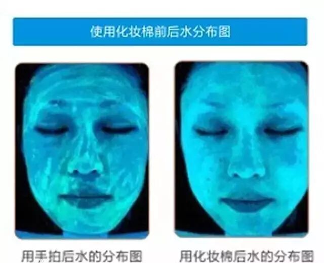 一共只有40片,25RMB左右,小编开始犹豫了一下,算起来可能有点贵,但是想想更贵的化妆水,小编就安心败起来了。化妆水量少也能完全浸湿,擦在脸上,吸收也很好。看看水分分布图,就知道化妆棉有多么重要。