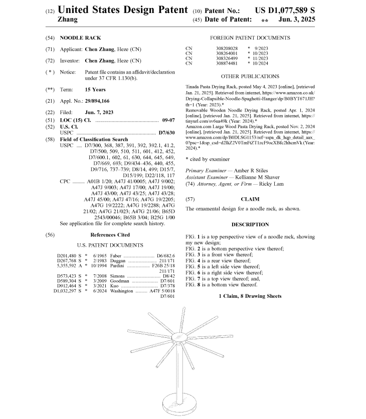 原告长期从事木工工具和家居产品设计,重点产品 Noodle Rack 面条架 采用木质结构并带有旋转烘干支架,既能避免面条粘连,又能节省厨房空间,属于高实用性工具。