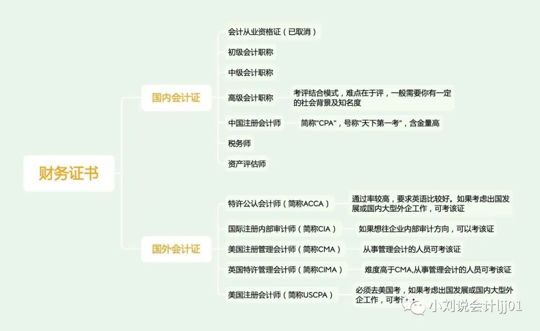 注:此文只涉及财务证书。与财务相关的如学历提升、金融投行证书(如CFA、保荐代表人考试、基金从业资格证、证券从业资格证等等)不在此文具体阐述。