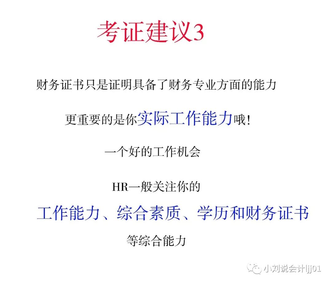 3、财务证书只是证明具备了财务专业方面的能力。更重要的是你实际工作能力!一个好的工作机会,HR一般关注你的工作能力、综合素质、学历和财务证书等多方面。
