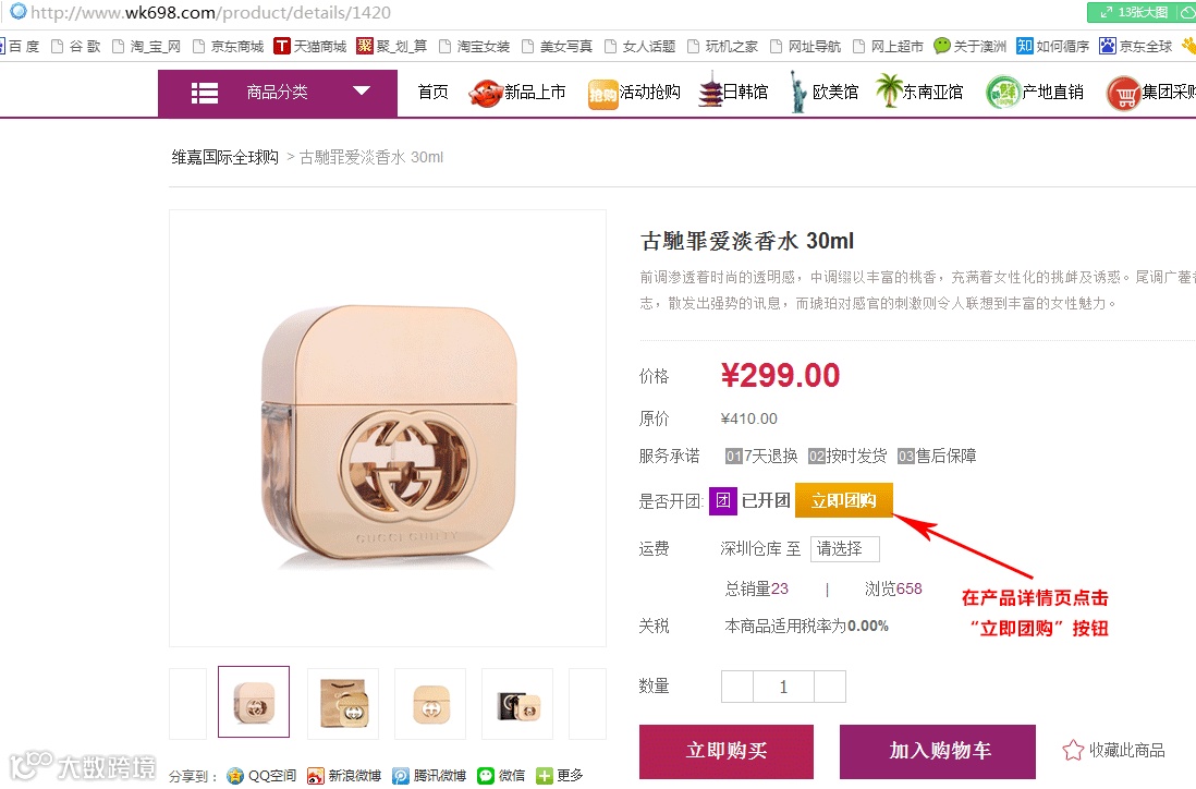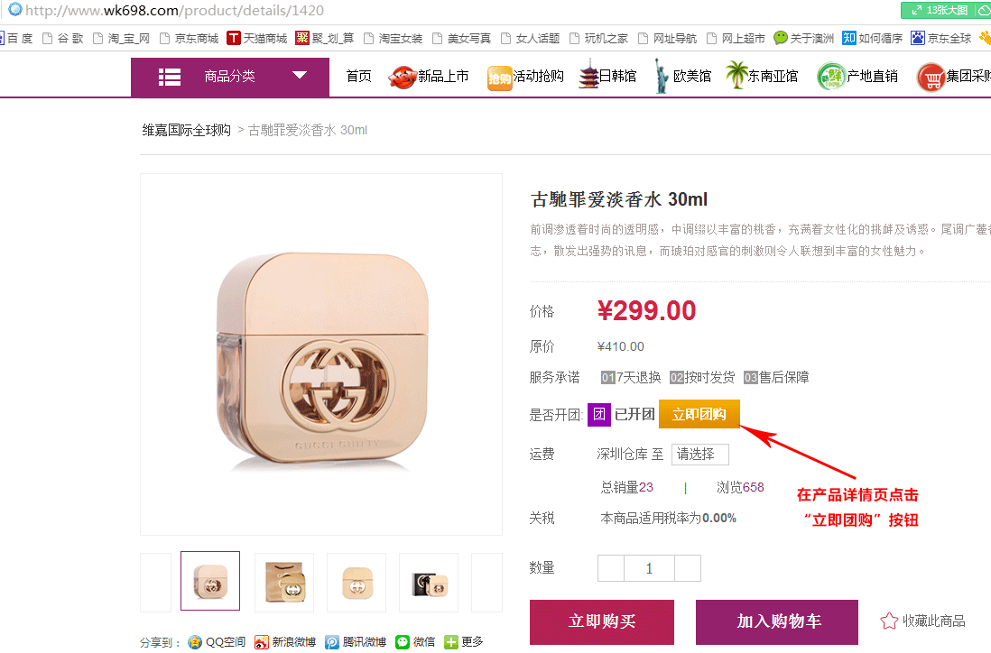 一、进入产品详情页,点击“立即购买”按钮进入到团购页面!