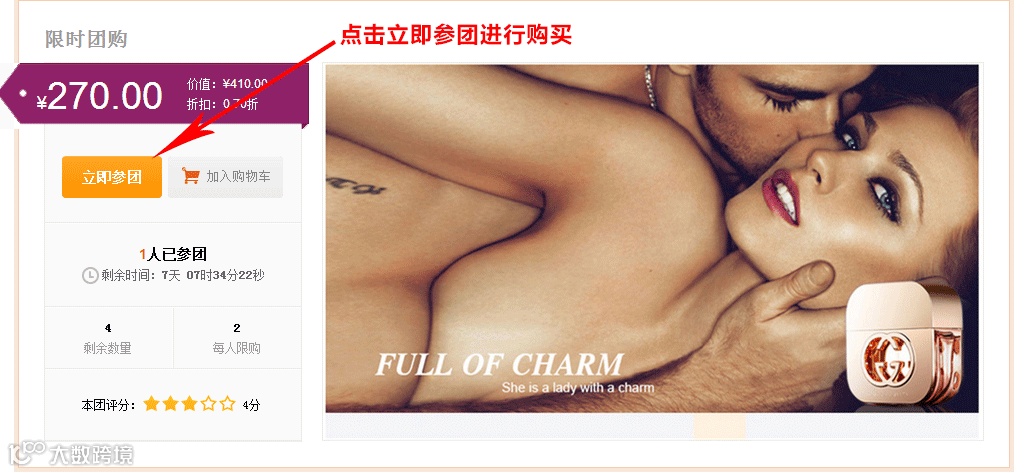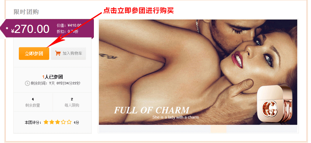 二、进入团购页面后,点击“立即参团”按钮即可进行团购价购买!