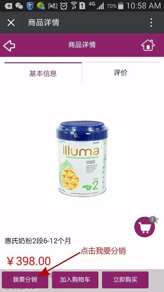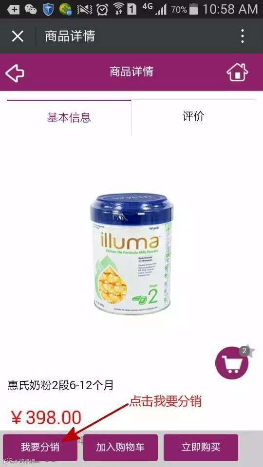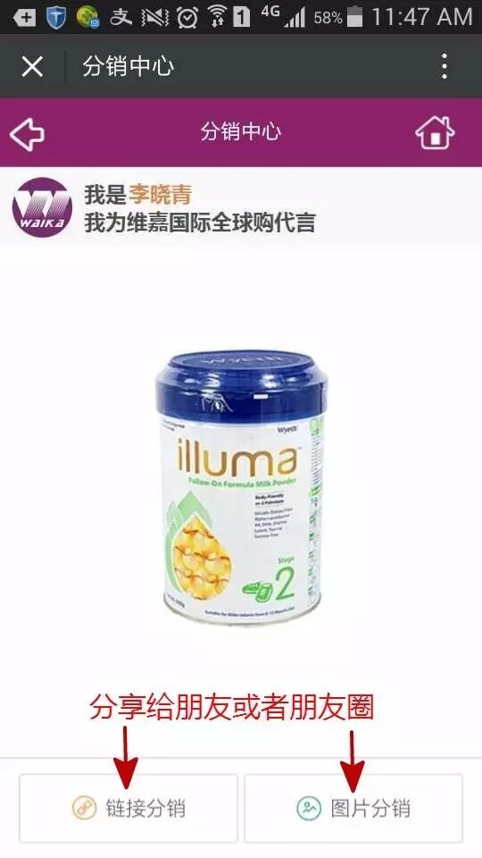 5、分享链接或者产品图片给朋友或朋友圈,如果你的没有关注我们公众号的朋友产生购买你就能得到佣金哦